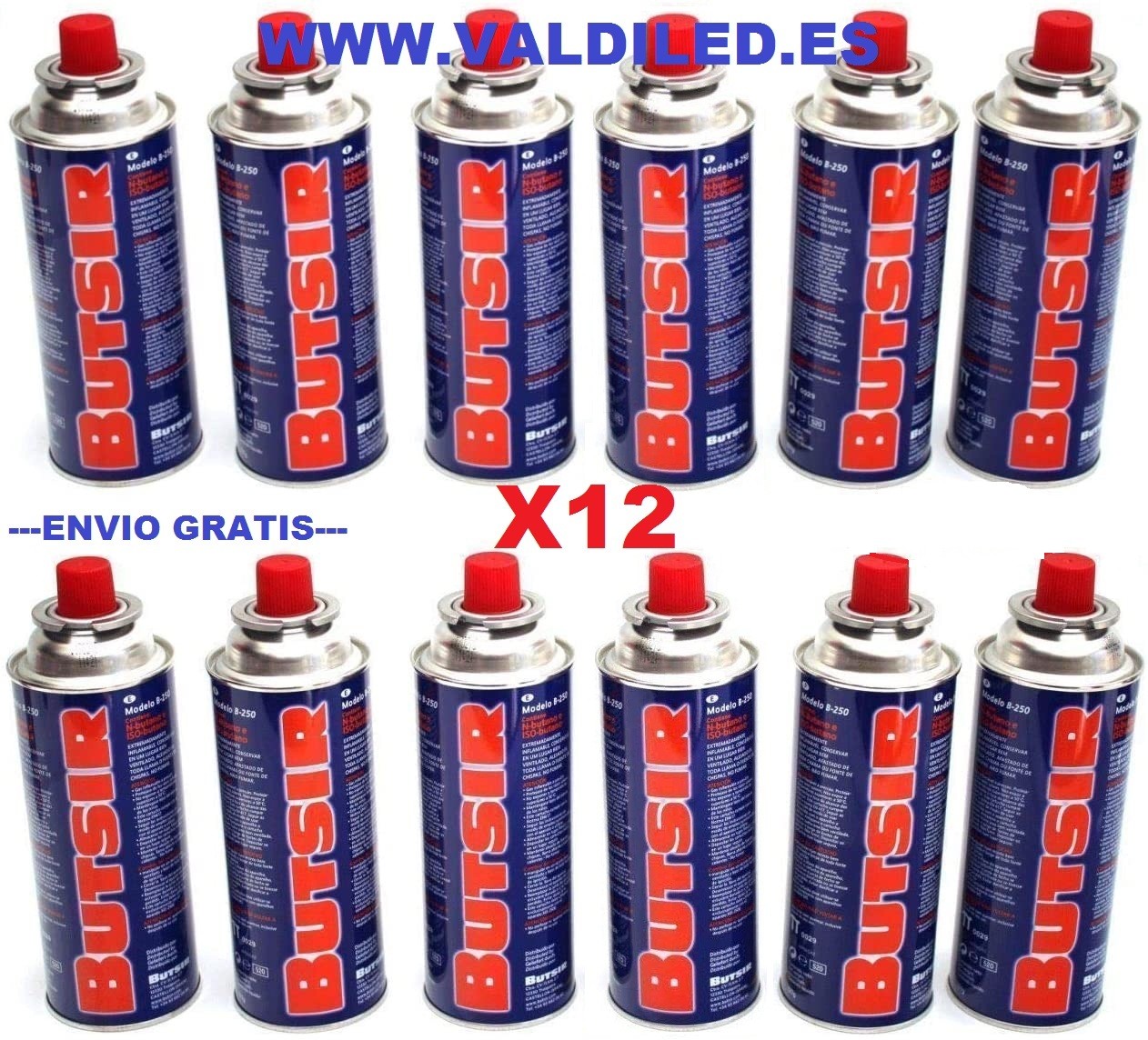 Pack de 12 Bombonas Gas de 227Gr Con Envío Gratis, Butsir.