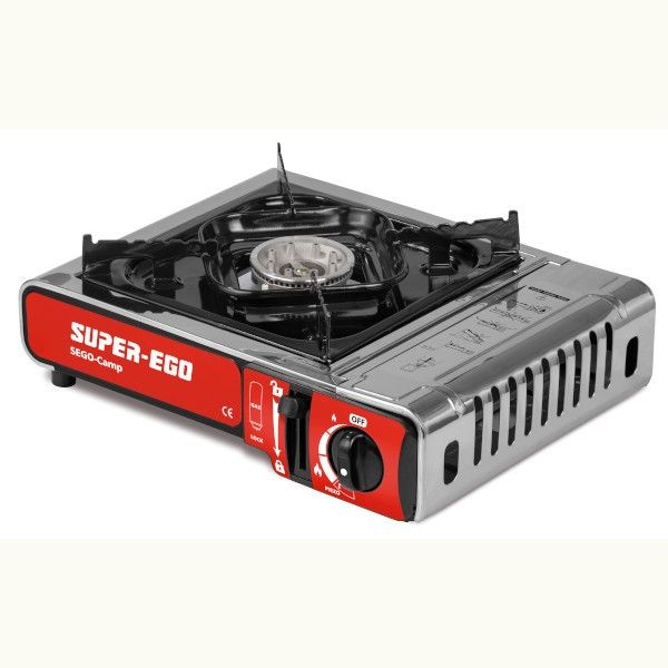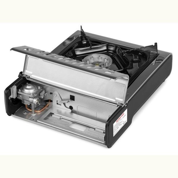 - Cocina portátil de 1 fuego para cartuchos de gas B-250 o bombona de butano. Con maletín de transporte incluido. Practica cocina indicada para camping, embarcaciones, etc… Dispone de dispositivo de seguridad si la presión de gas es excesiva. Encendido electrónico Mando de regulación Maletín de transporte en plástico negro, con asa Potencia 2,5 Kw Consumo 155 gr/hora Eficiencia térmica 55% Medidas 343x275x82 mm Peso 1,86 kg Testado e inspeccionado en España ISO 9001/14001, manguera y adaptador para bombona grande no incluido, como butsir superego