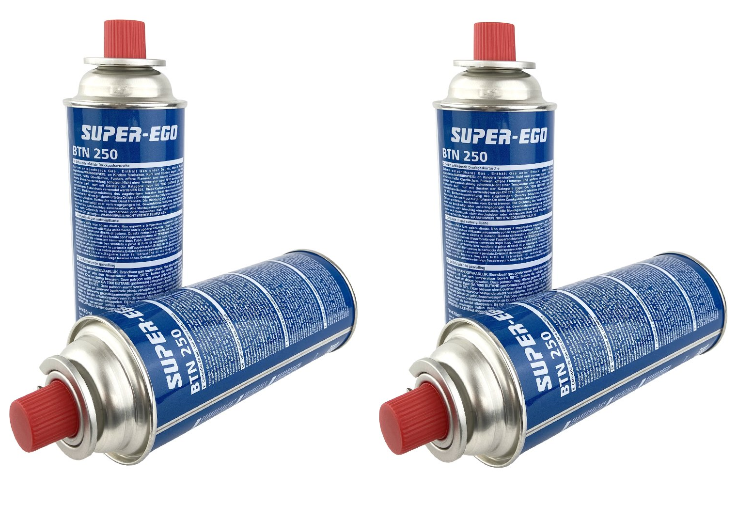 Pack de 4 Cartuchos de Gas Butano superego tipo 250 de 227g. •Apto para aparatos de cartucho de válvula. •Acorde a la normativa europea. •Válido para cocinas portátiles tipo MS-1000, Barbacoa Multigrill, Calefactores y Hornos portátiles, etc. •Peso: 227g, Envíos Gratis en 24h a 48h.