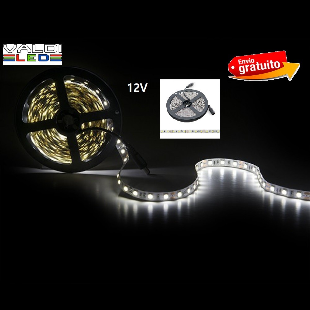 Tira 12v de 300 LED 72W Ip25 6000ºK SMD5050 x5 Metros, Blanco Frío con Envío Gratis.