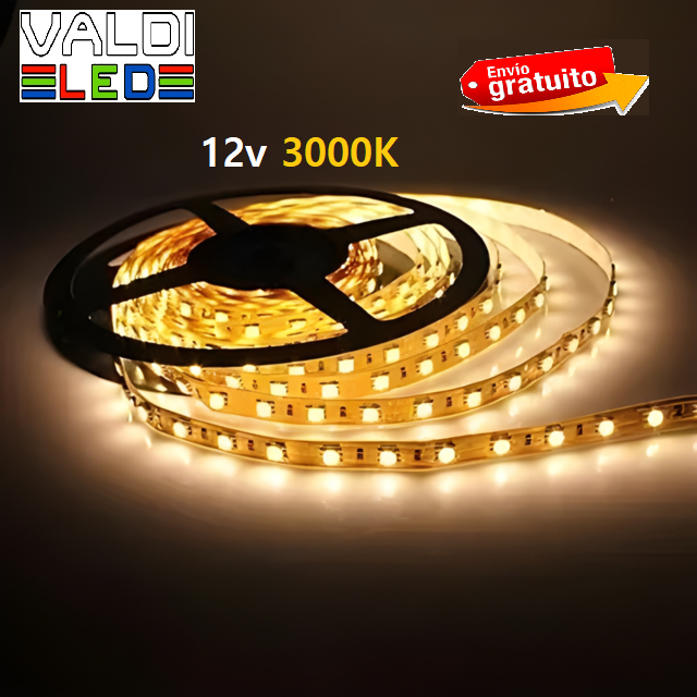 Tira 12v de 300 LED 72W Ip25 3000ºK SMD5050 x5 Metros, Blanco Cálido con Envío Gratis.
