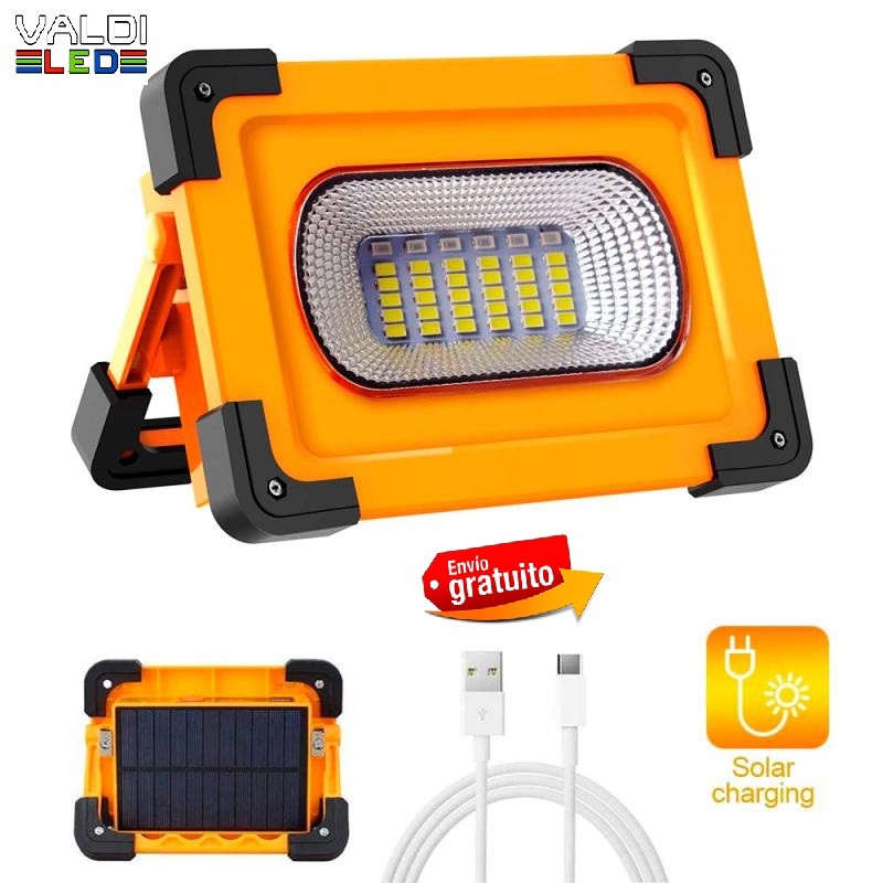 Foco Proyector LED Solar 30w PowerBank Portátil con Batería, Recargable, Luz para trabajo, Recargable USB o Solar, Envío Gratis.