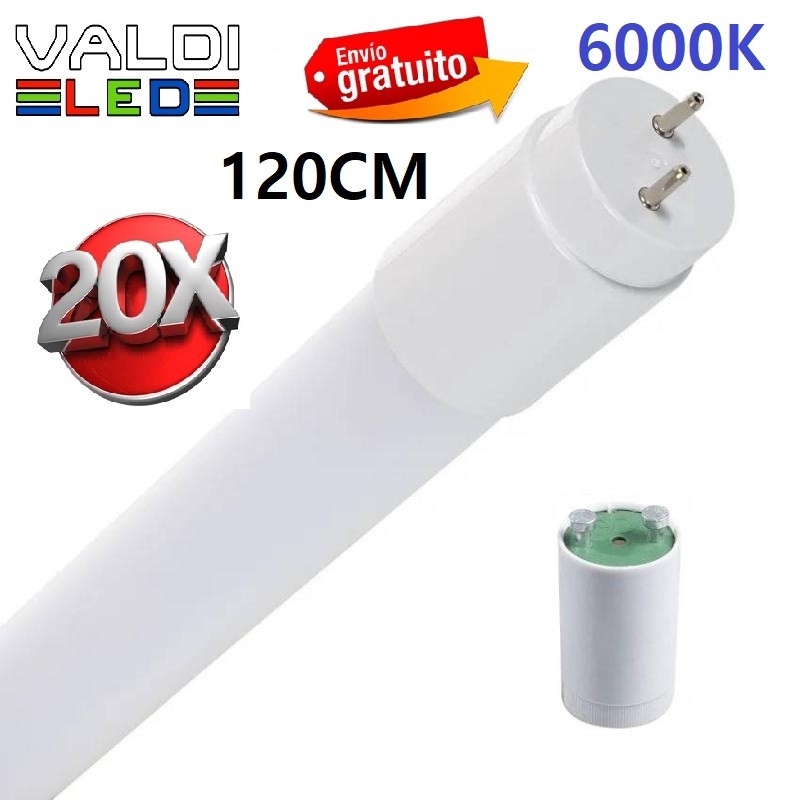 Pack de 20 Tubos Led T8 120cm 18W de Cristal 6000k con Conexión un Lateral y Envío Gratis.
