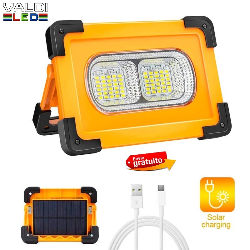 Foco Proyector LED Solar 50w PowerBank Portátil con Batería, Recargable, Luz para trabajo, Recargable USB o Solar, Envío Gratis