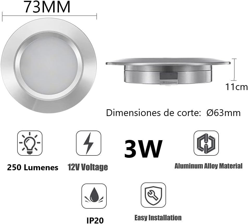 Pack 4 Placas Led a 12v 3w 4000k empotrar Con Envío Gratis, para Caravana, Camper, Autocaravana o instalaciones a 12v