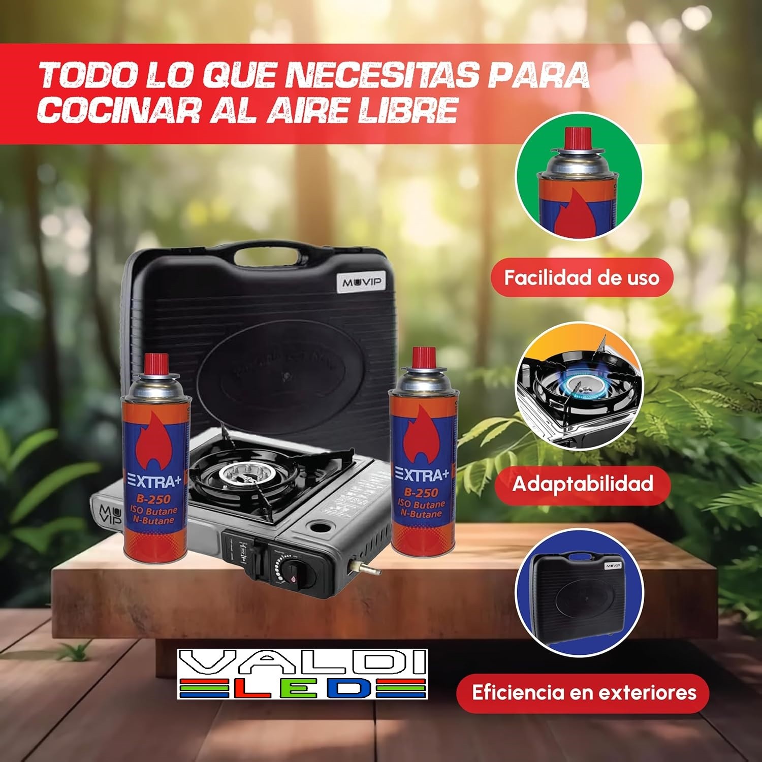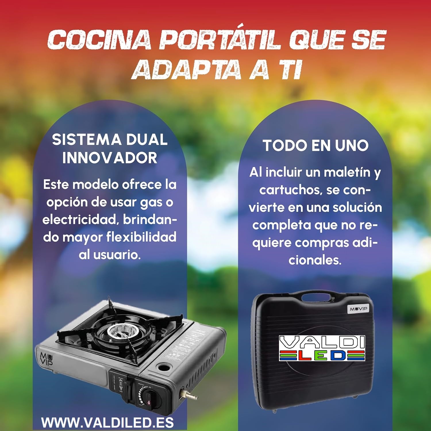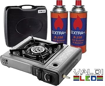 Cocina de Gas Portatil Modelo Dual 1 Fuego + 2 cartuchos de gas + Maletin+ Envío Gratis, con Adaptador de Botella Externa