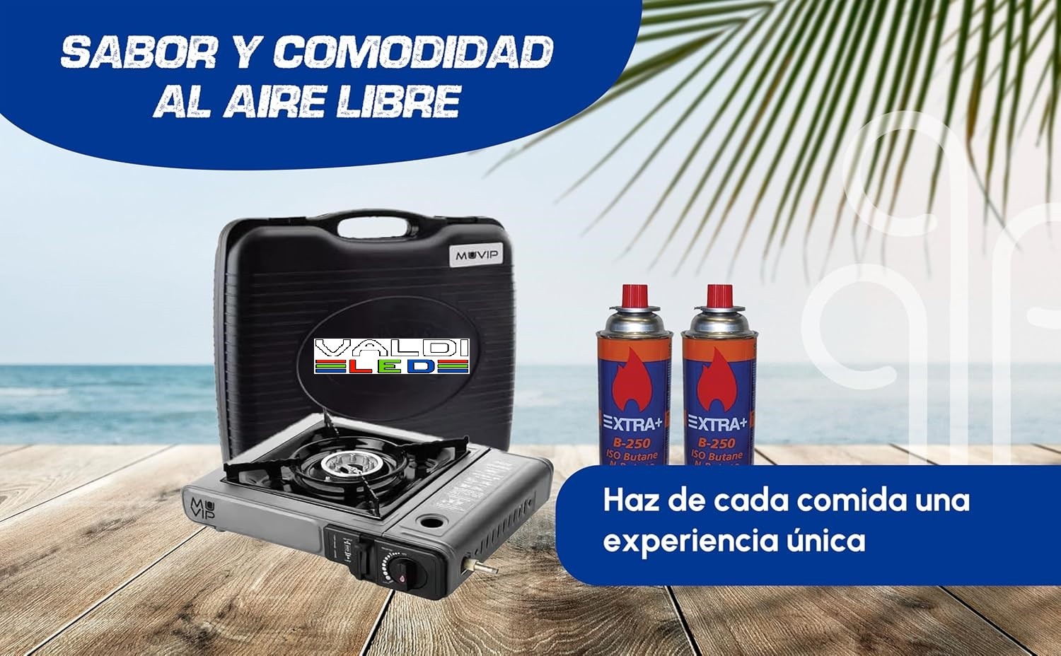 Cocina de Gas Portatil 1 Fuego con Adaptador de Botella Externa + 2 cartuchos de gas + maletin de transporte. Especificaciones: -Encendido automático -Quemador de aluminio -Válvula de doble sellado -Protección contra sobrepresión -Conector de doble función para conectar botella de gas externa. -Mecanismo de seguridad para el cartucho de gas -Incorpora maleta de transporte -Dimensiones: 34x28x11cm